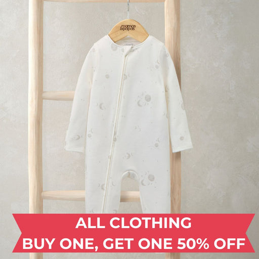 View full detailsThis celestial print onesie is made from 100% cotton. Its long sleeved with integrated turn back scratch mitts & a full zipper opening. From ne...