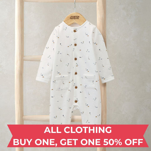 View full detailsThis kite print onesie is made from 100% cotton. Its long sleeved with front button opening and front patch pockets, also includes domes in the cro...