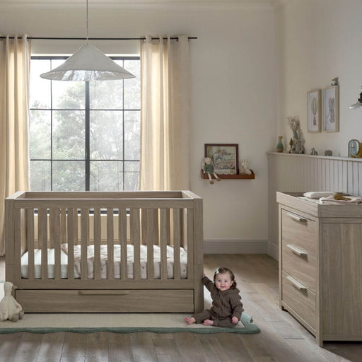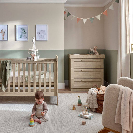 Atlas | Classic and Neutral, to play up or play down. This Bundle Includes: Atlas Oak Cotbed, Atlas Oak Dresser & Cotbed Mattress With a simp...