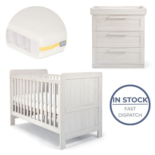 Mamas and Papas Franklin White Wash Bundle - Cot + Dresser + Mattress