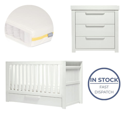 Mamas and Papas Atlas Nimbus White Bundle - Cot + Dresser + Mattress