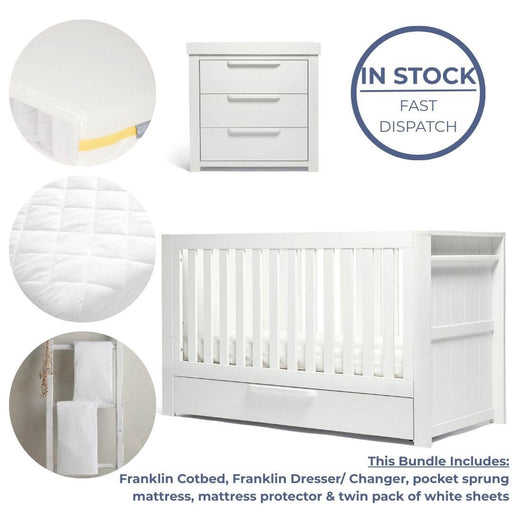 Franklin Cotbed - Converts into a day bed then a toddler bed to last up to 4 years and beyond This Bundle Includes: Franklin White Cotbed & Cot...