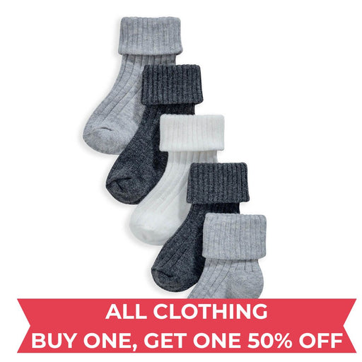 View full detailsKeep your little ones toes nice and toasty with this 5 pack of socks. Crafted from snuggly soft cotton with ribbed details and turned back hems, th...