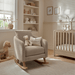 - Fully upholstered boucle nursing chair in irresistibly soft, textured fabric to complement modern nurseries